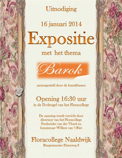Op donderdag 16 januari werd een bijzondere tentoonstelling van de kunstklassen geopend. Het thema van de expositie is De Barok. Deze periode uit de 17e - begin 18e eeuw kenmerkt zich door een overdadig gebruik van weelderige versieringen.