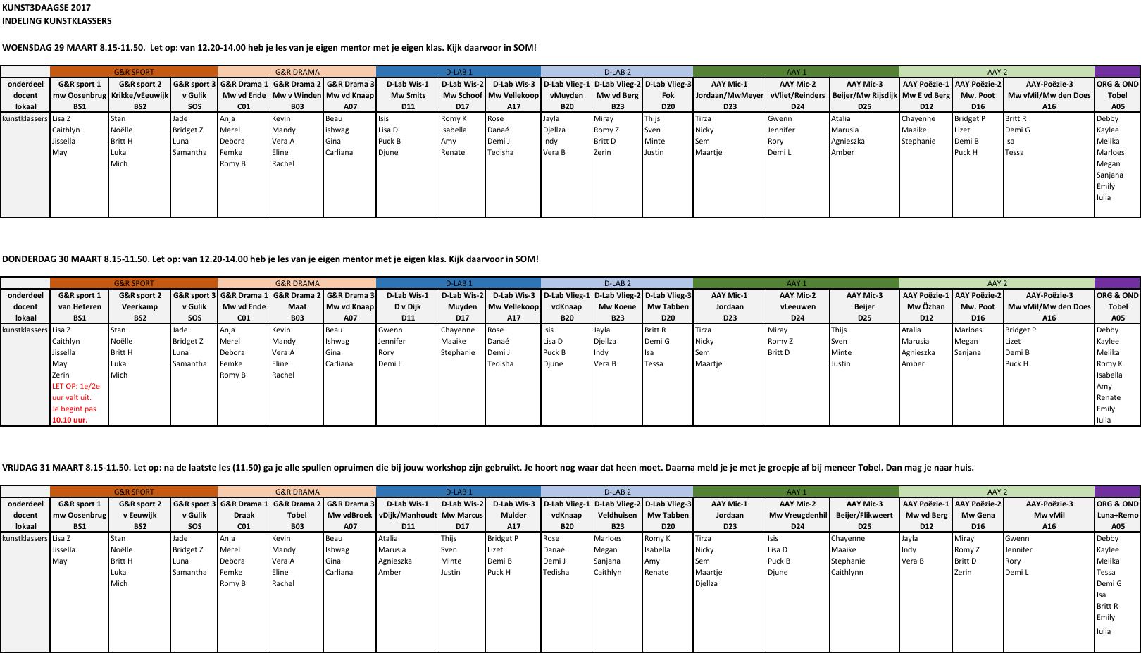 De kunstklassers krijgen deze workshops al eerder. TIjdens de K3D helpen ze de docenten, en verzorgen de logistiek en de catering.